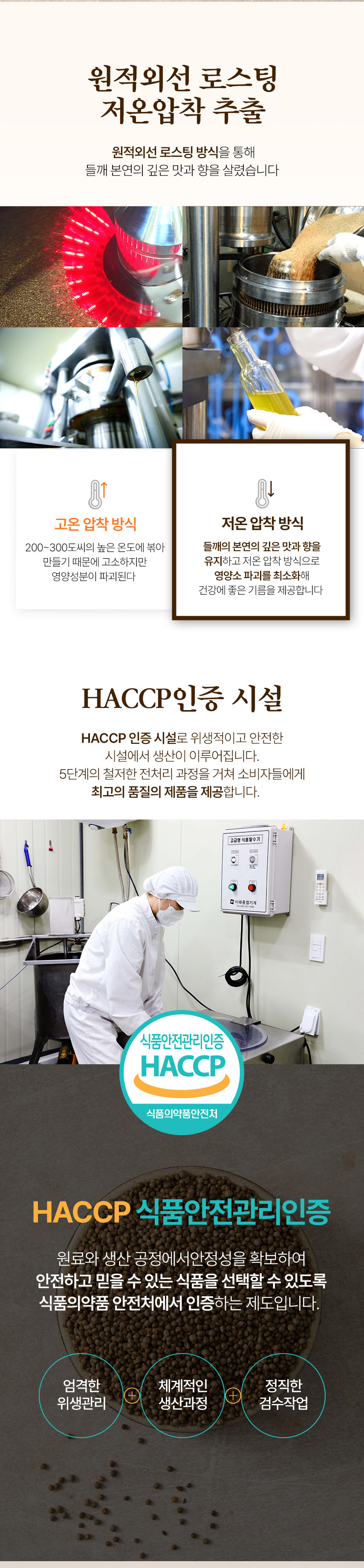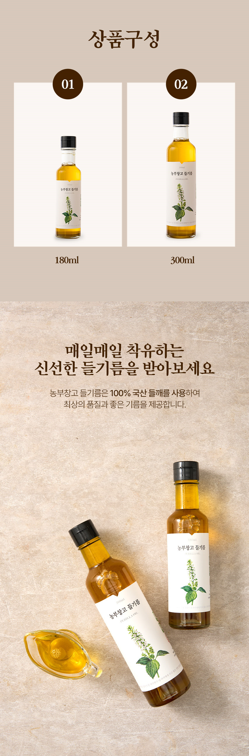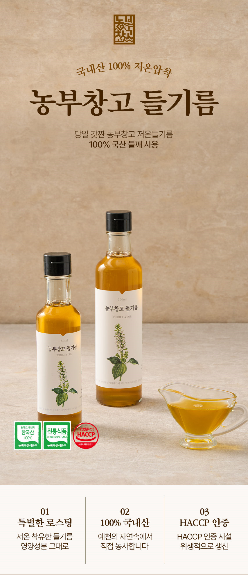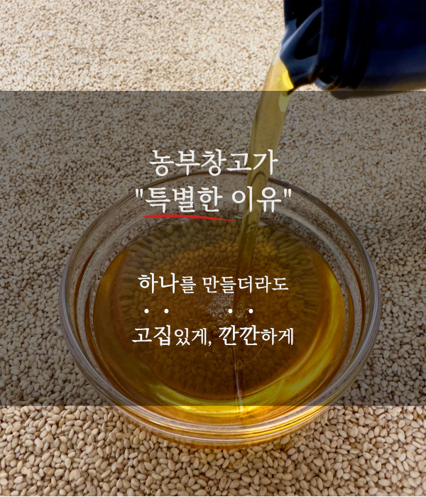 국산 참깨·들깨만을 사용해 오일을 만듭니다. 지역 농가와의 계약재배를 통해 원물을 수급하고, 향을 내기 위한 고온 착유가 아닌 저온 로스팅·저온 압착 방식으로 참깨 본연의 맛과 영양을 지켜냅니다.