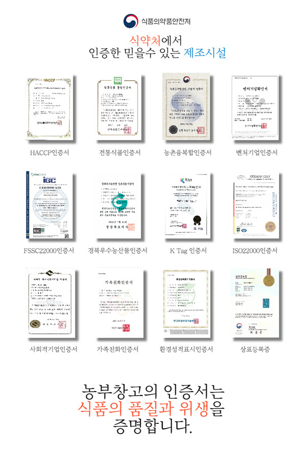 FSSC22000, ISO22000, FDA 등록을 완료했으며