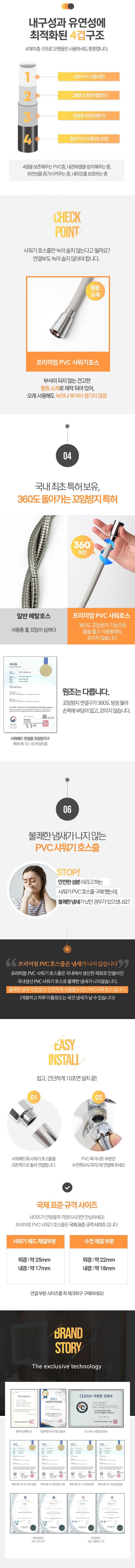 [소퓨어] PVC샤워호스 2m - 실버