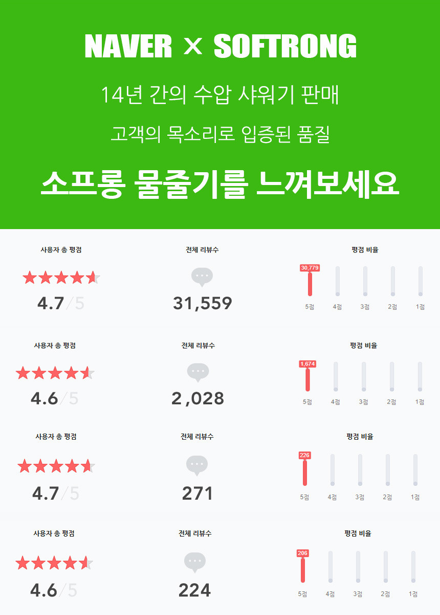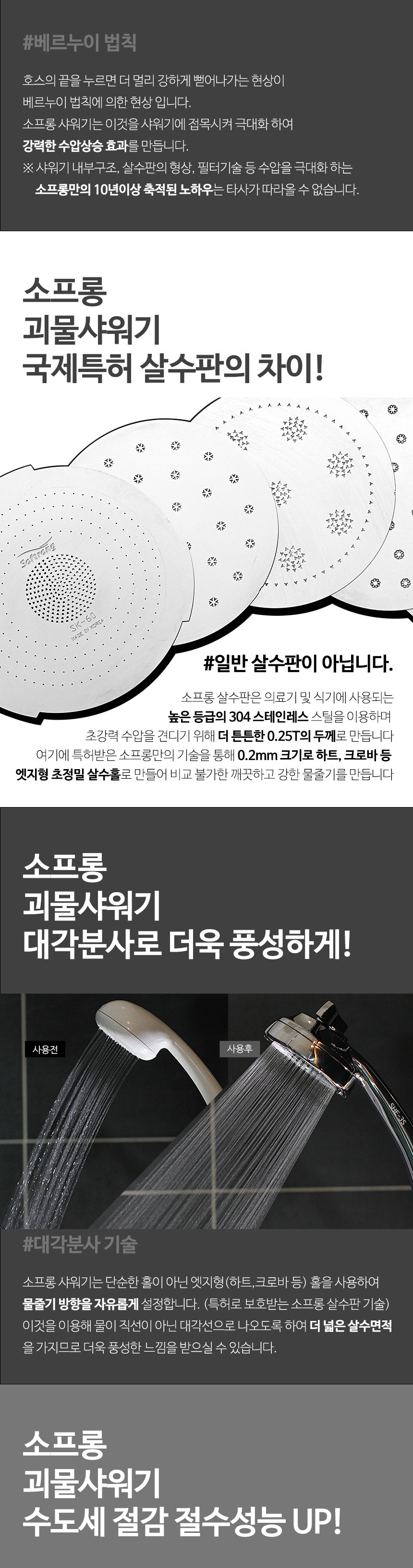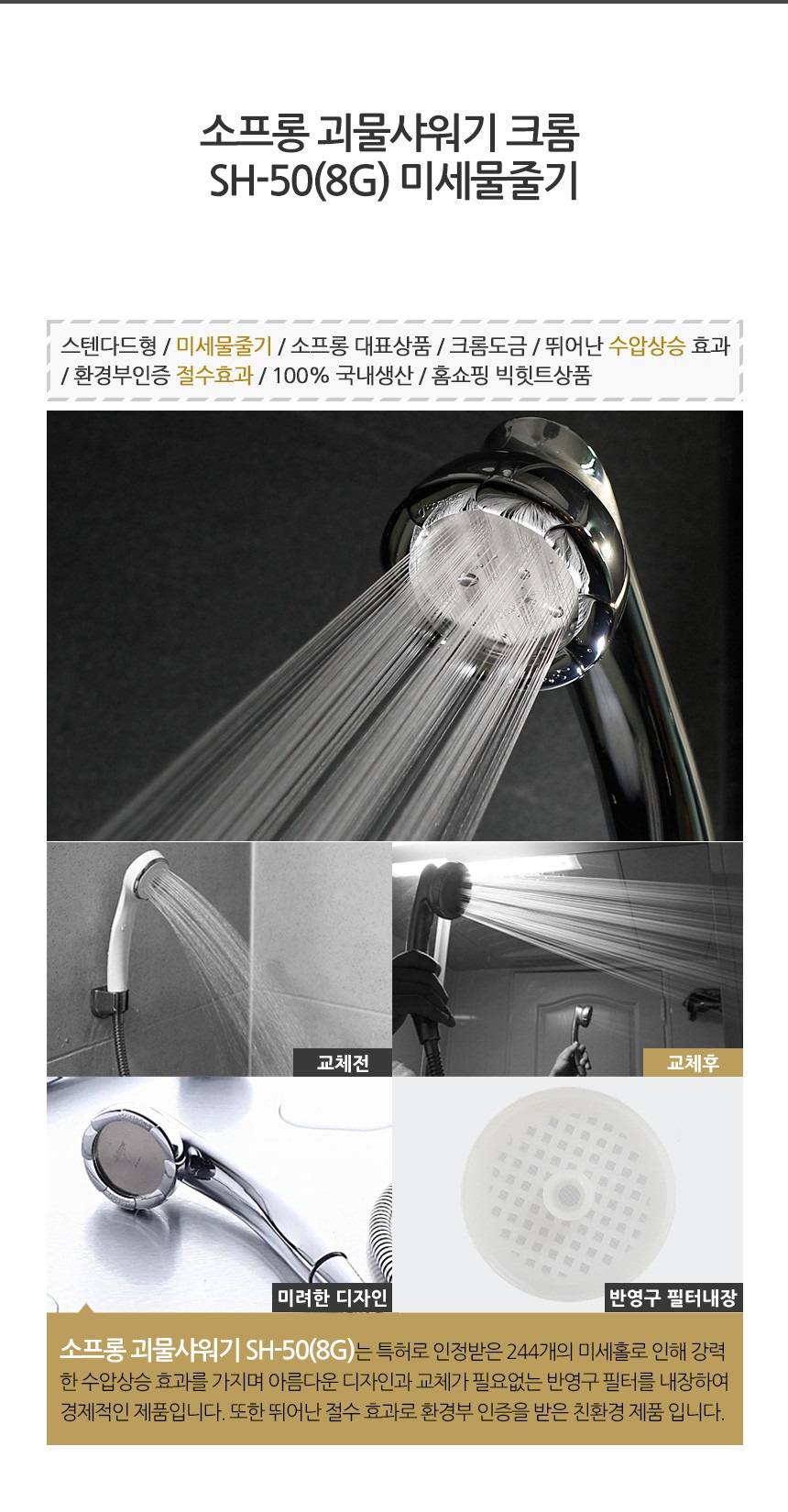 [소프롱] 수압 샤워기 헤드 SH-50(8G) - 미세물줄기