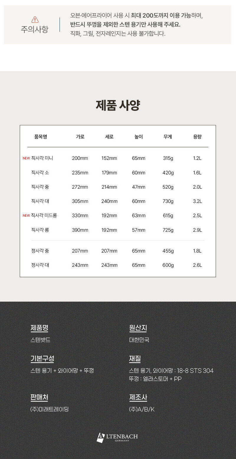 [알텐바흐] 스텐밧드 직사각 미니 3종세트