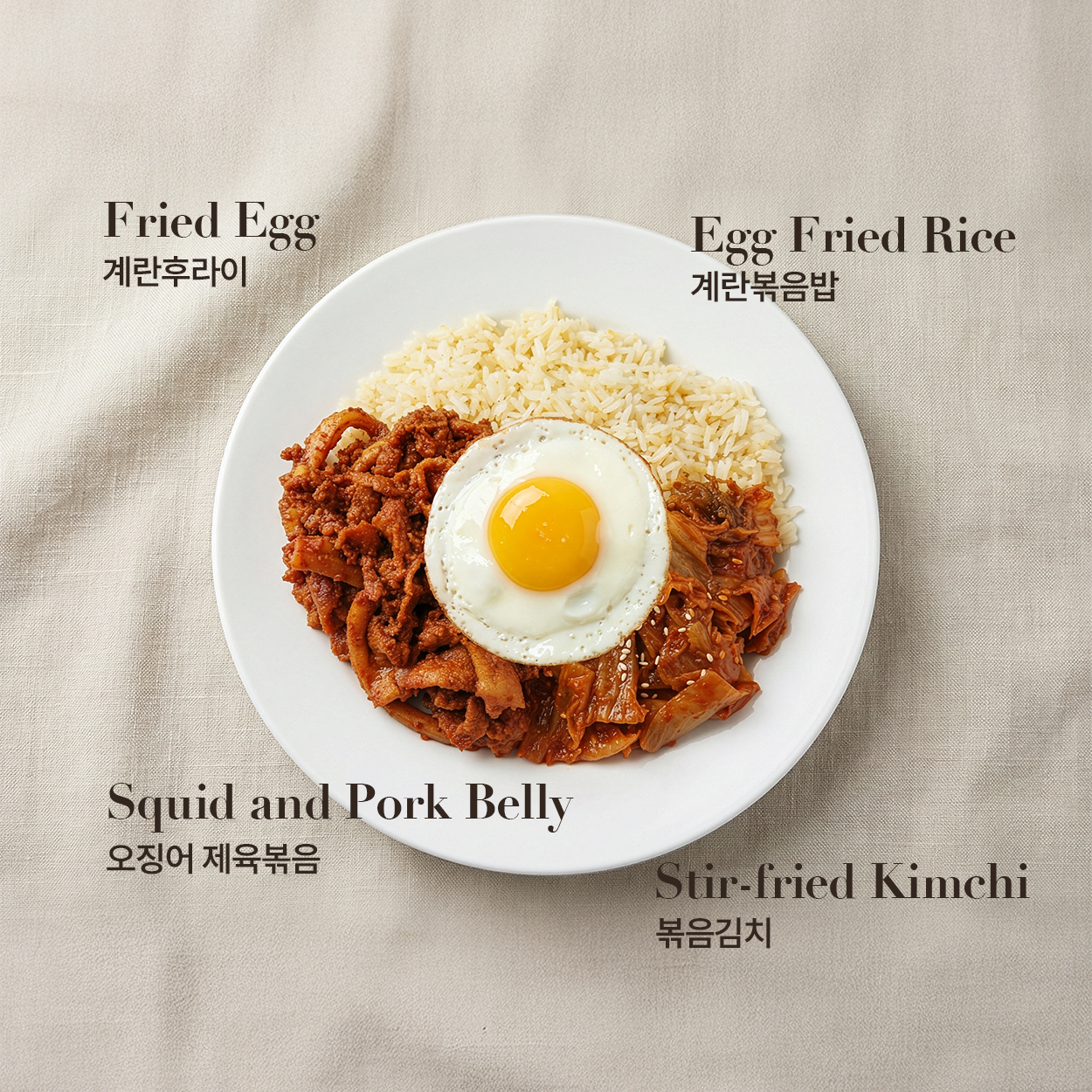 Kimchi & Spam Fried Rice: Egg, Wheat, Soy, Fish, Sesame, Crustacean Shellfish(Shrimp, Crab)