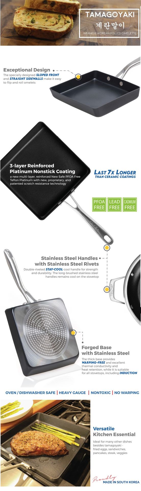 TeChef 계란말이 팬은 주방에 하나쯤 꼭 필요한 다용도 팬으로, 한식과 일식 요리에 모두 이상적인 선택입니다.