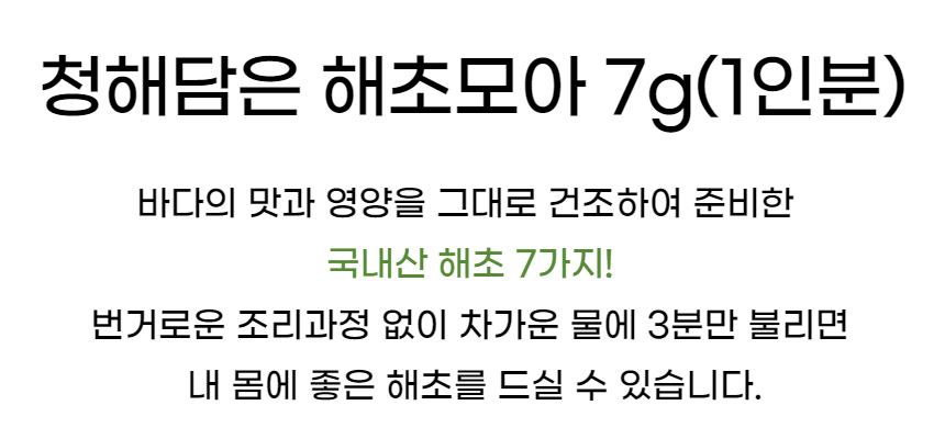 국내산 7가지 : 불통가사리 , 참풀가사리 , 톳 , 미역 , 다시마 , 꼬시래기 , 한천