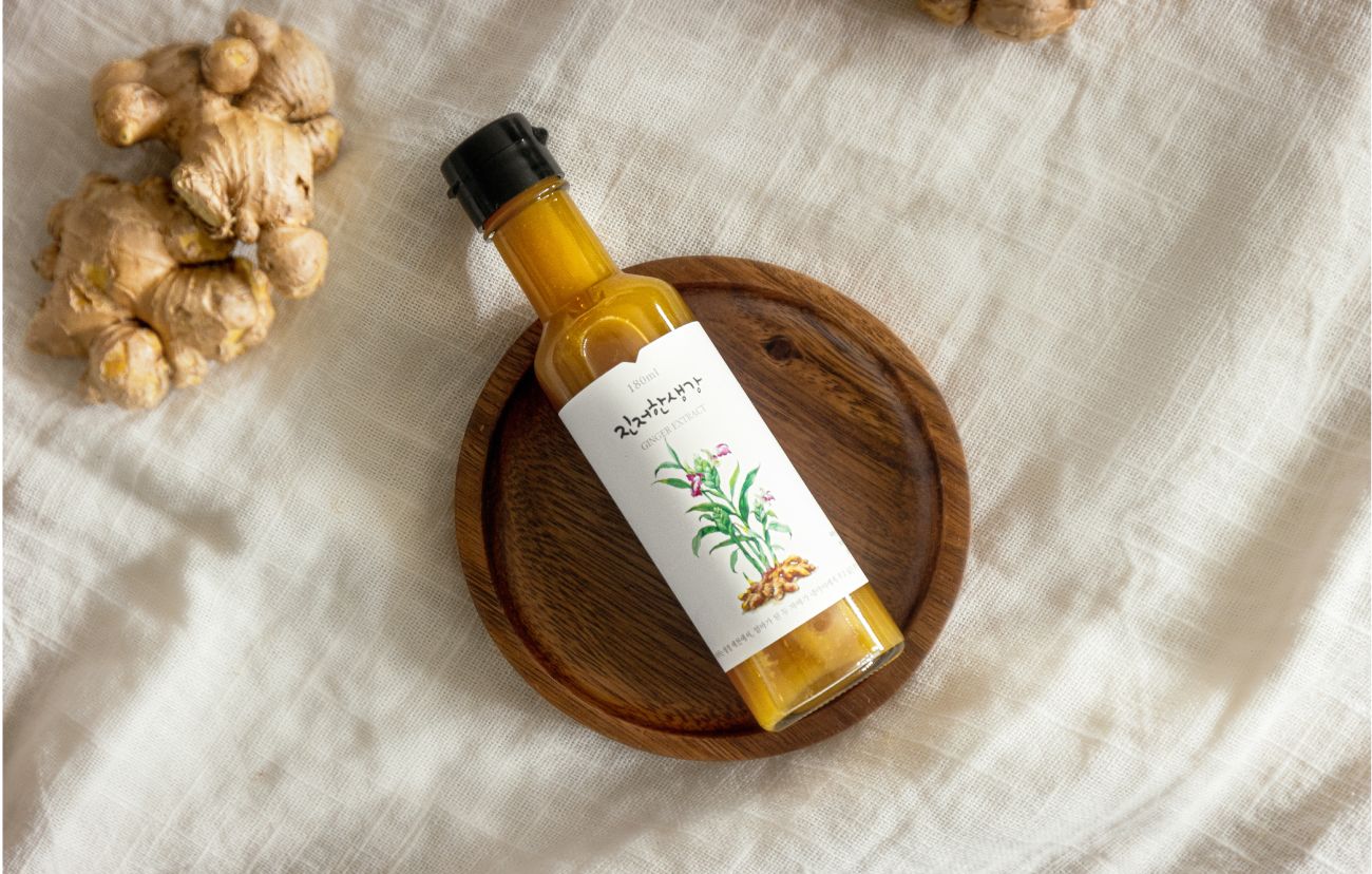 생강진액은 정성과 시간을 들여 진하게 생강 그대로 추출해서 이 한 병에 담았어요.
