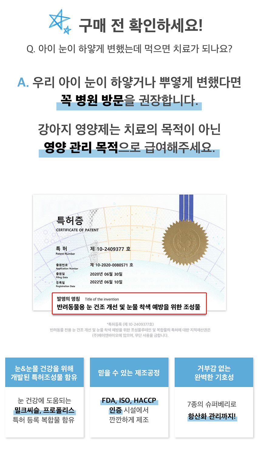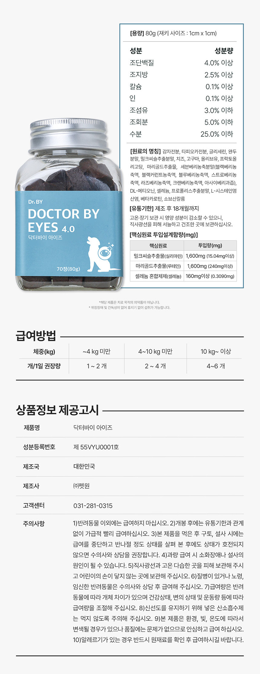[닥터바이] 아이즈 강아지 눈 영양제 (70정) 80g