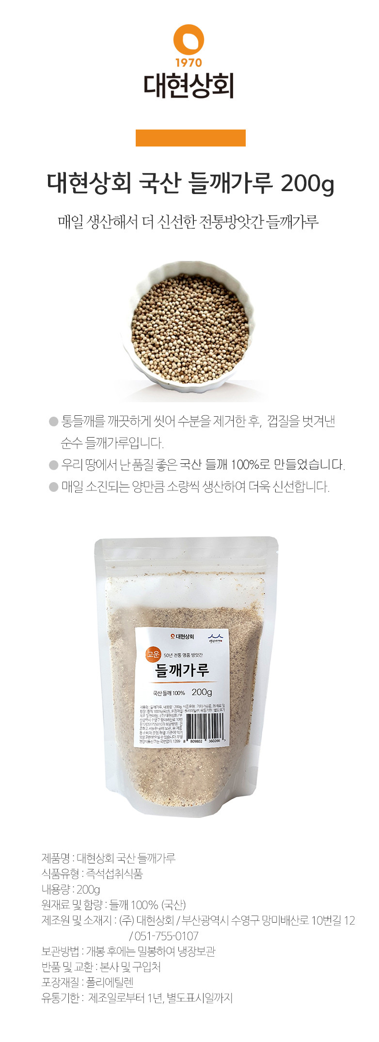 [대현상회] 국산 고운 들깨가루(탈피) 200g