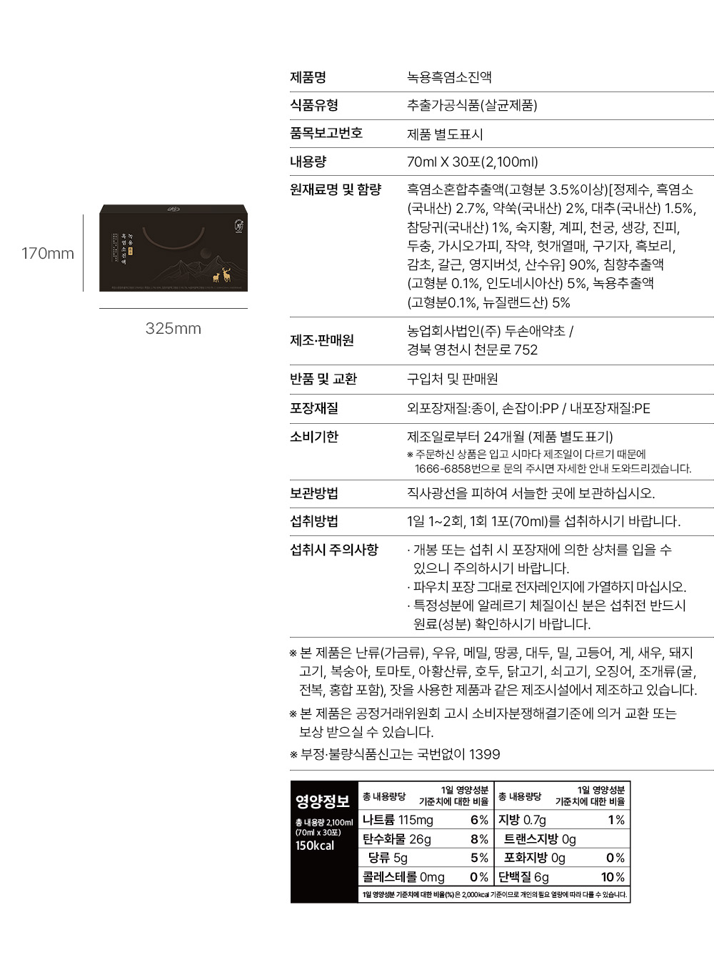 [두손애약초] 프리미엄 녹용 흑염소 진액 (70ml x 30포)