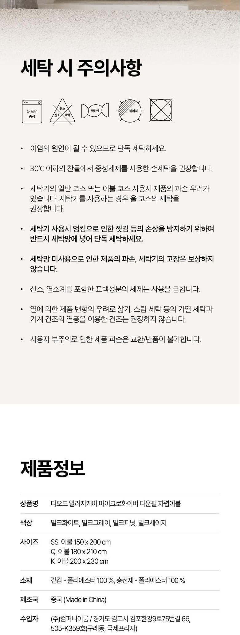 [디오프] 간절기 항균 알러지케어 먼지없는 차렵이불 - 밀크화이트 Q (이불단품)