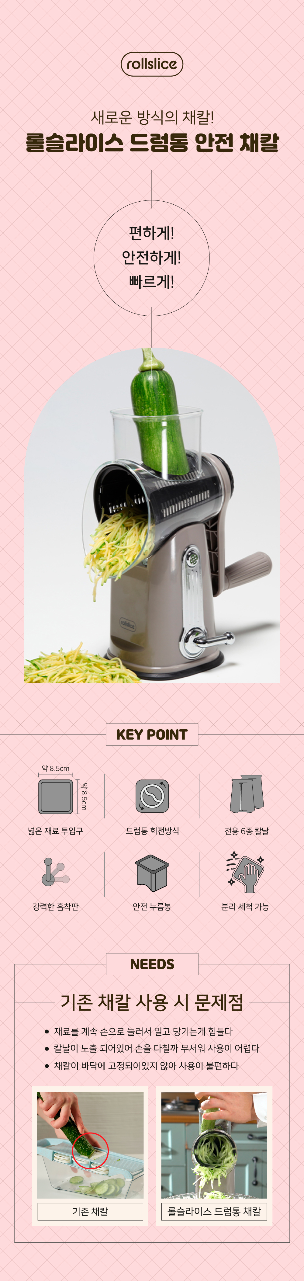 롤슬라이스 드럼통 안전 채칼 풀세트 (6종 칼날+세척솔+껍질제거필러)