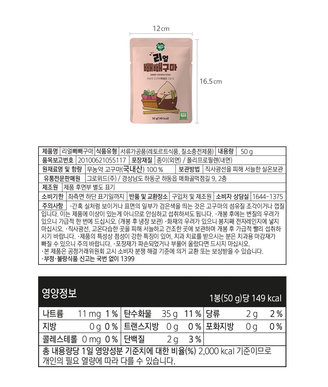 [룰루맘] 리얼빼빼구마 50g