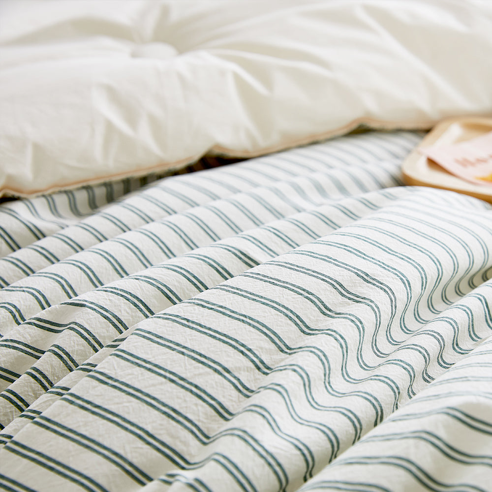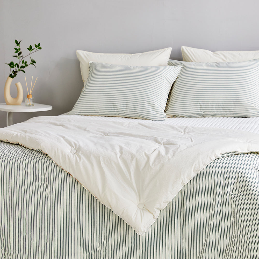 [머무룸][Bundle] NEW 세로 고밀도 선염 순면 차렵이불 & 패드세트 (All-season) - 그린 K020