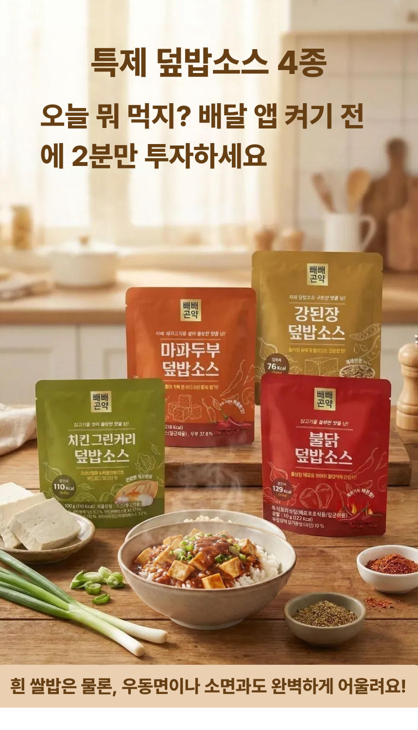 [빼빼곤약] 한끼 완성 - 치킨 그린커리 덮밥소스 100g