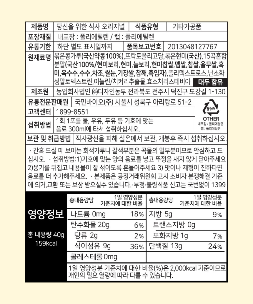 [식물성][밀포유] 오리지널 프로틴 파우더 280g (40g x 7팩) K024