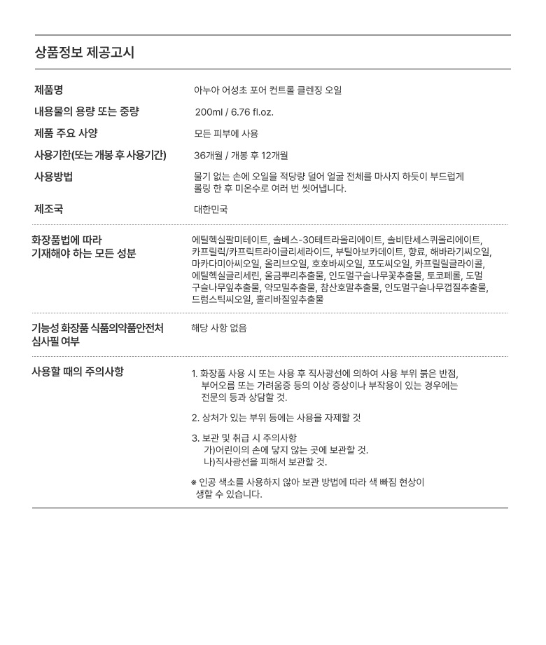 [아누아] 어성초 포어 컨트롤 클렌징오일 200ml K107