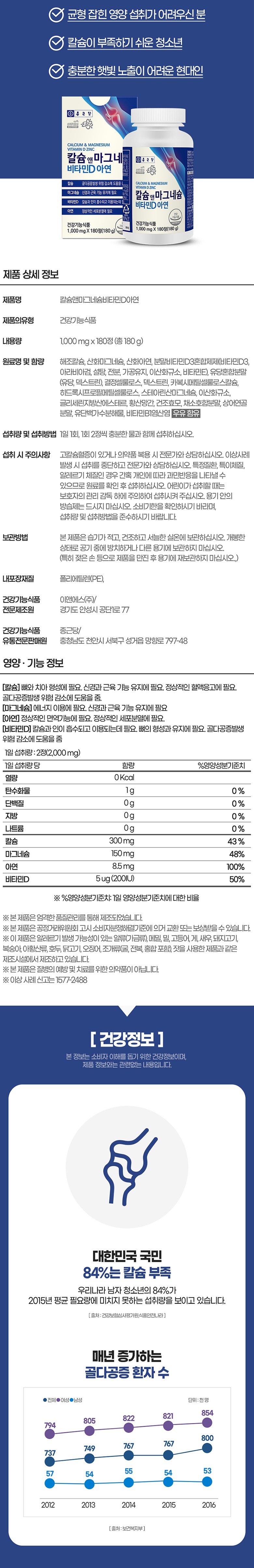 칼슘 앤 마그네슘 비타민D 아연 180정